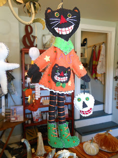 Our little Pomegranate farmhouse would be the perfect setting for a haunted house, wouldn't it? In fact, there are some who say it is haunted (by the friendly ghost of grandma). Although setting up a full-fledged haunted house is a bit beyond our scope, we do keep adding some spooky layers to our fall offerings. Lots of wonderful halloween goodies have just arrived, from our felted skeletons and kitties to wearables (creepy, nerdy glasses, feathery hair clips and rings, veiled hat headbands...). And, we have a fresh crop of silk velvet pumpkins in (they're 20% off through the end of the month!).